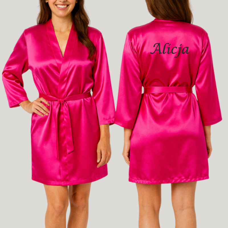 Personalizowany komplet z satyny, szlafrok i koszulka nocna z własnym haftem, różne kolory
