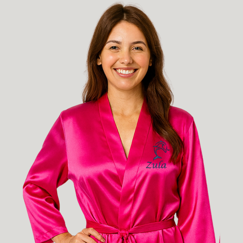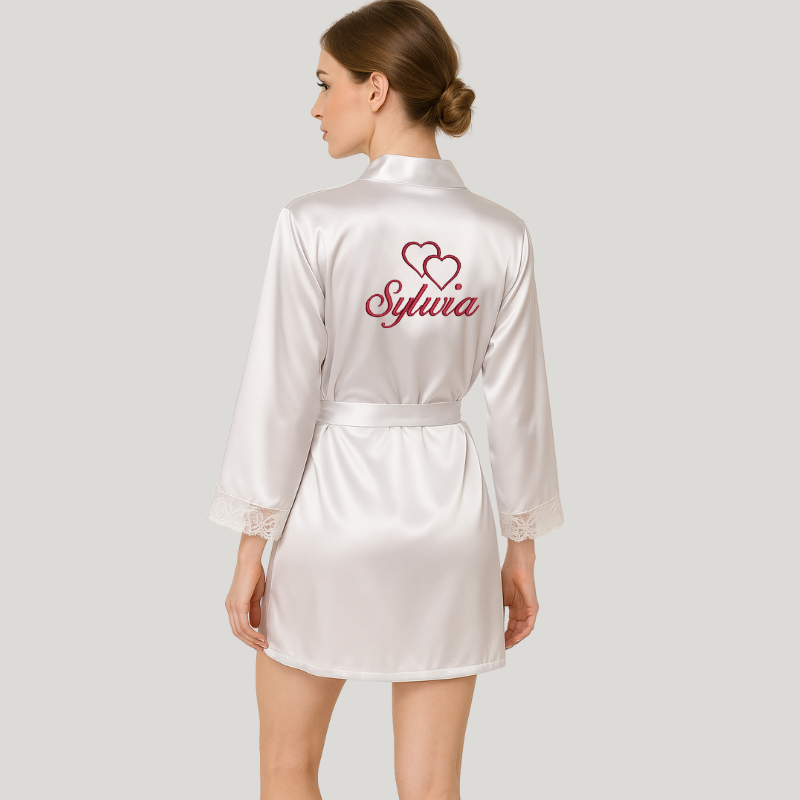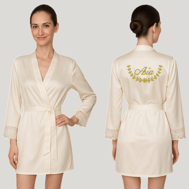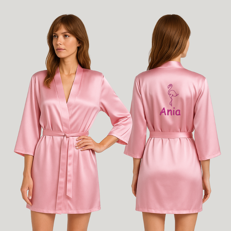 Personalizowany szlafrok damski z satyny z szerokimi rękawami ¾ ozdobiony dowolnym haftem