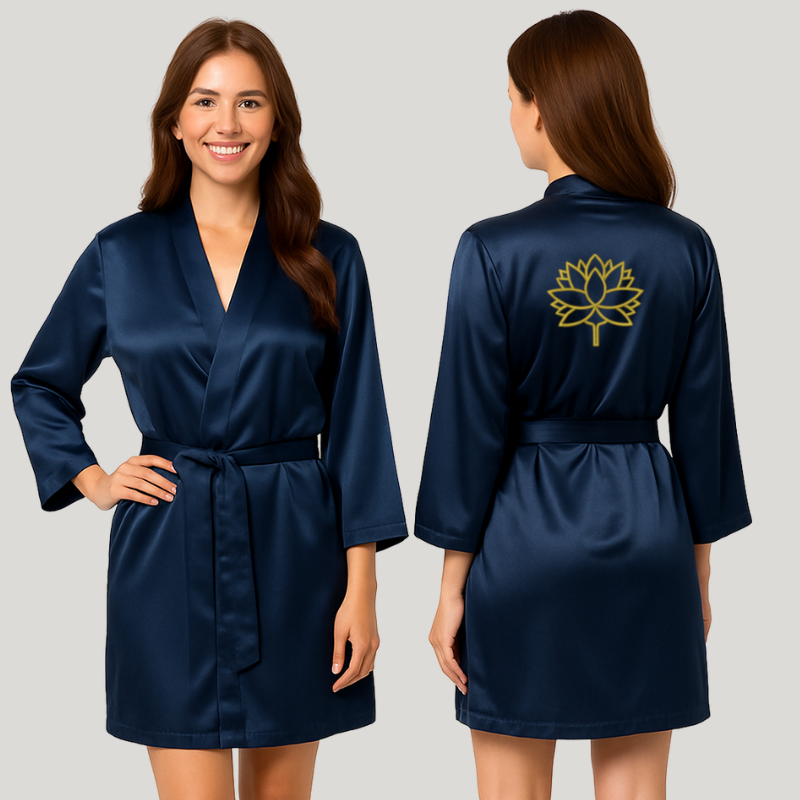 Ten satynowy szlafrok perfekcyjnie sprawdza się zarówno w podróży jak i w zaciszu domowym podczas porannej kawy czy wieczornej lampki wina.
