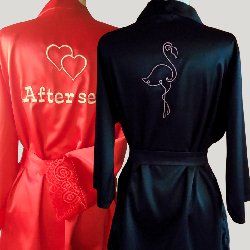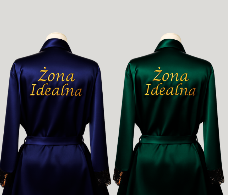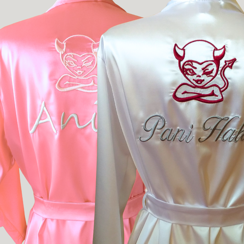 Możesz sama zdecydować jakiego koloru nici mamy użyć, jaki z oferowanych wzorów ma być wyhaftowany oraz na jakiej części szlafroka (na plecach lub na przodzie).
