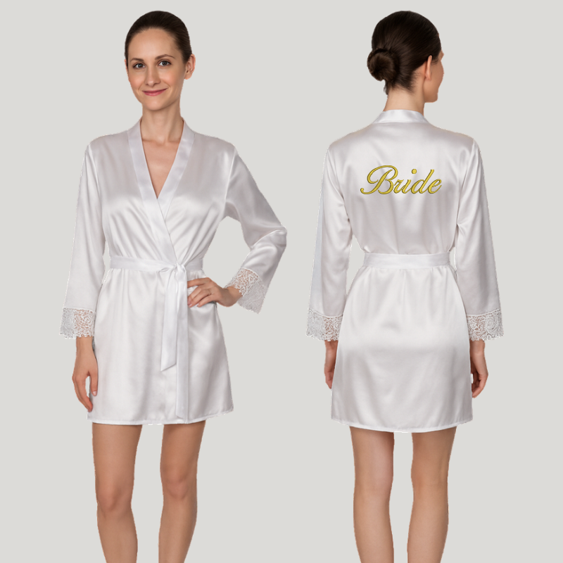Satynowy szlafrok z haftem będzie doskonałym pomysłem na prezent dla każdej przyszłej Panny Młodej.